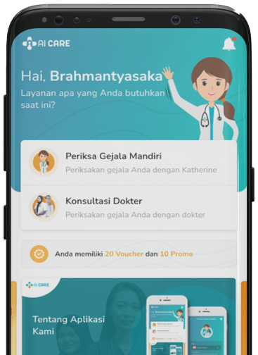 Ai Care, menggabungkan teknologi AI dengan tenaga kesehatan professional untuk memberikan perawatan yang terbaik. Kami berusaha menghadirkan informasi dan tenaga kesehatan di genggaman tangan Anda kapanpun dan dimanapun. Dengan bantuan teknologi AI, kami menghadirkan bantuan untuk meringankan beban dokter kami. Sehingga dokter dapat lebih fokus pada tujuannya yaitu memberikan perawatan dan penanganan terbaik untuk pasien-pasiennya. Selain itu, teknologi kami juga menawarkan informasi medis yang tepat dan akurat untuk membantu pasien dalam mengambil keputusan yang tepat dan menjaga kesehatannya.